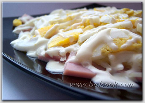 Еще один вариант салатов «горок». А название такое он получил, полагаю за яичную лапшу и заправку по принципу заправки для корейской моркови.