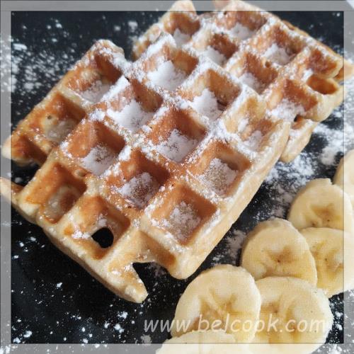 Во второй слегка взбиваем яйца с ванильным сахаром. Бананы разминаем вилкой (не нужно в блендер, эти кусочки бананов в готовых вафлях делают их только лучше) и добавляем к яйцам. Перемешиваем и вливаем молоко. Затем добавляем к яйцам растопленное сливочное масло. Еще раз перемешиваем.