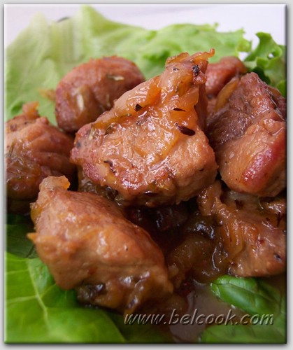 Мне уже доводилось и хлеб с пивом печь, и мясо с ним тушить, и пивной кляр, и картошку запекать. Помню, когда я первый раз готовила мясо с пивом, то ужасно боялась, что пивной дух перебьет все другие ароматы и вместо вкусного мяса в соусе я получу варенные куски мяса в луже теплого пива, но мои страхи оказались напрасны. Пиво в соусах ведет себя великолепно, а уж аромат у готовых блюд и вовсе потрясающий и этот рецепт не исключение. Такое мясо просто готовить и очень вкусно есть.