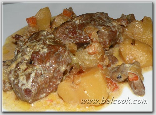 Простое, сытное, домашнее блюдо. Приготовленная таким образом говядина получается очень мягкой.