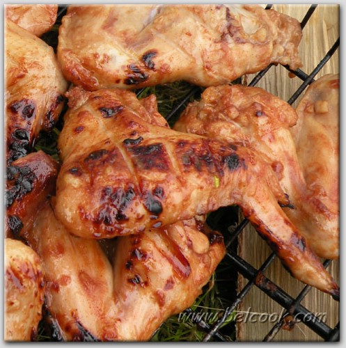 В этом маринаде можно замариновать как свинину, так и курицу. И хоть хорошего фото крылышек у меня не вышло (только бедрышки и успела сфотографировать), но рецепт я все ж напишу. Уж больно хорош результат. Крылышки, как собственно и бедрышки, получились пряные, сочные и ароматные. Очень советую опробовать.