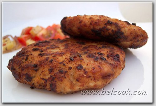 В кафе куда мы ходим с работы обедать этот бифштекс постоянный пункт в обеденного меню. Куриный фарш и обжаренные грибы по-моему абсолютно беспроигрышное сочетание. В кафе эти бифштексы делают с шампиньонами, я делала с замороженными белыми грибами, а гост допускает еще и использование сухих грибов, так что выбирайте что вам по вкусу :)