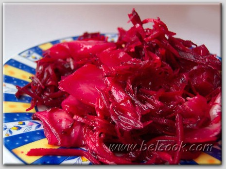 Наверняка вы встречали салаты в которых продукты режут соломкой, укладывают разноцветными горками и перед подачей перемешивают. Составляющие в них могут быть самыми разнообразными, самые популярные, пожалуй, свекла, морковь, мясо да жареная картошка. Этот салат родился как раз по мотивам таких вот «горок». Основой его стала маринованная свекла.