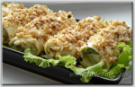 Очень приятная закуска. Мне чем-то напомнила сырные шарики а-ля «рафаэлло» из плавленного сыра с орешком внутри. Делаются просто и выглядят на столе привлекательно. В стандартной упаковке сыра 8 пластинок и количество начинки у меня как раз хватило на 8 штук, а потому если людей больше — умножайте на два.. ну или на три ;) |