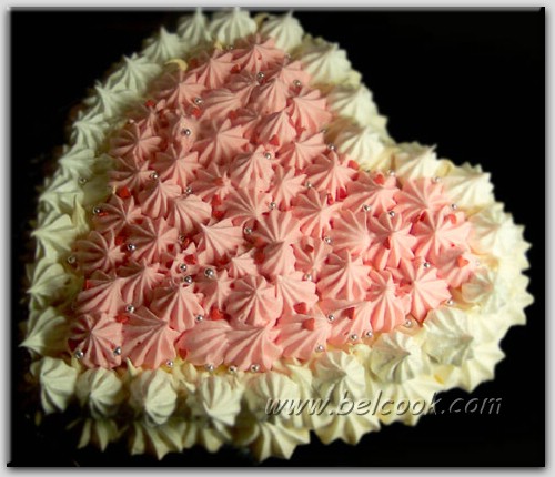 Форма у торта может быть любая, так как у меня это была «валентинка», то и форма у него в виде сердца.