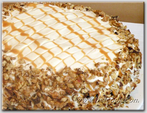 Прекрасный торт. Сочетание медовых коржей, чернослива и хрустящего безе с грецкими орехами просто потрясающее. Главное — хорошенько пропитайте коржи сиропом иначе торт может получиться суховатым. И не бойтесь длинного описания. Повозится, конечно, придется, но торт того стоит. Проще всего разделить процесс на несколько дней: в один испечь медовый корж, во второй безе, а в третий — собрать торт. Любители медовых тортиков просто обязаны его попробовать. |