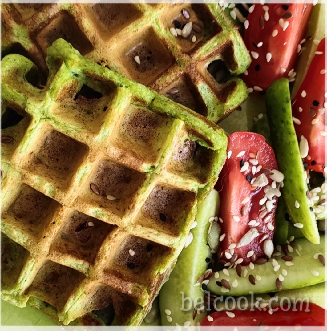 Вафли у меня прочно заняли позицию одного из любимых завтраков. Шпинат на столе у меня гость редкий и эти вафли хороший способ ввести в рацион эту полезную зелень. Ну и зеленые вафли — это красиво. Особенно хороши они будут с творожным сыром и слабосоленой красной рыбкой. Основа для сэндвичей из них тоже отличная.