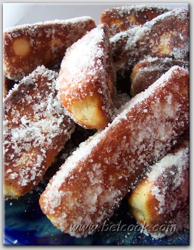 Очень простая домашняя выпечка. Наверное, у каждого в запасе есть что-то похожее: творожные палочки, пончики, батончики и т.д. Очень часто мне доводилось их готовить на первом курсе института. В ту пору нажарив гору таких палочек я ощущала себя чудо-кулинаром и супер-хозяйкой :))